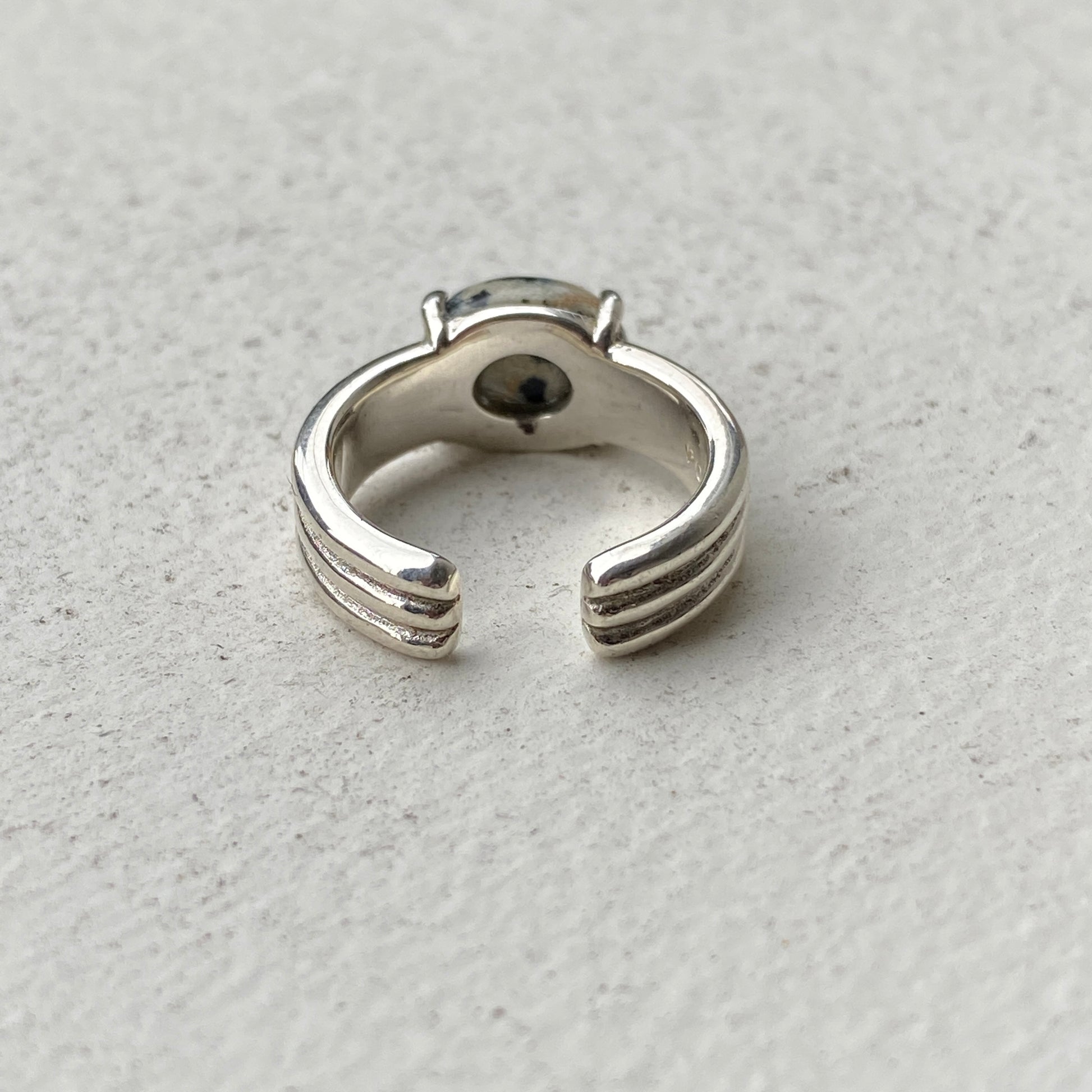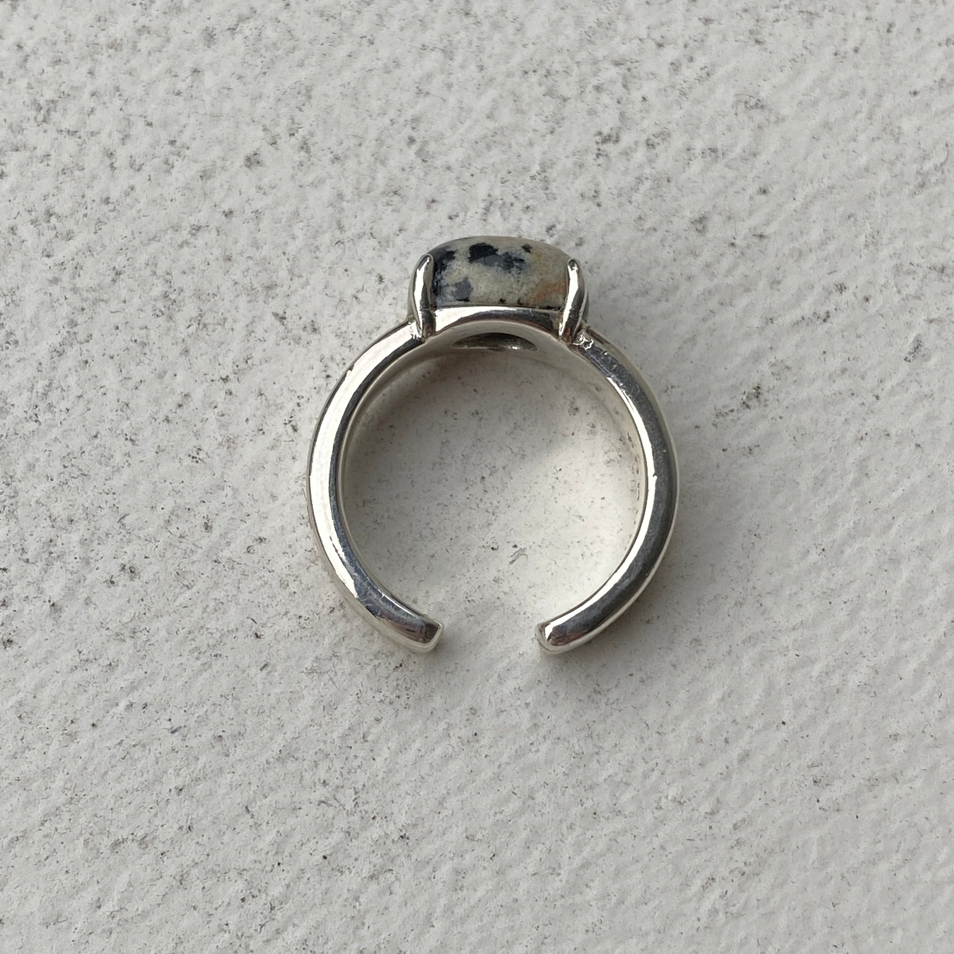 一番人気のダルメシアンジャスパーの石を使ったマニッシュな印象のリング。