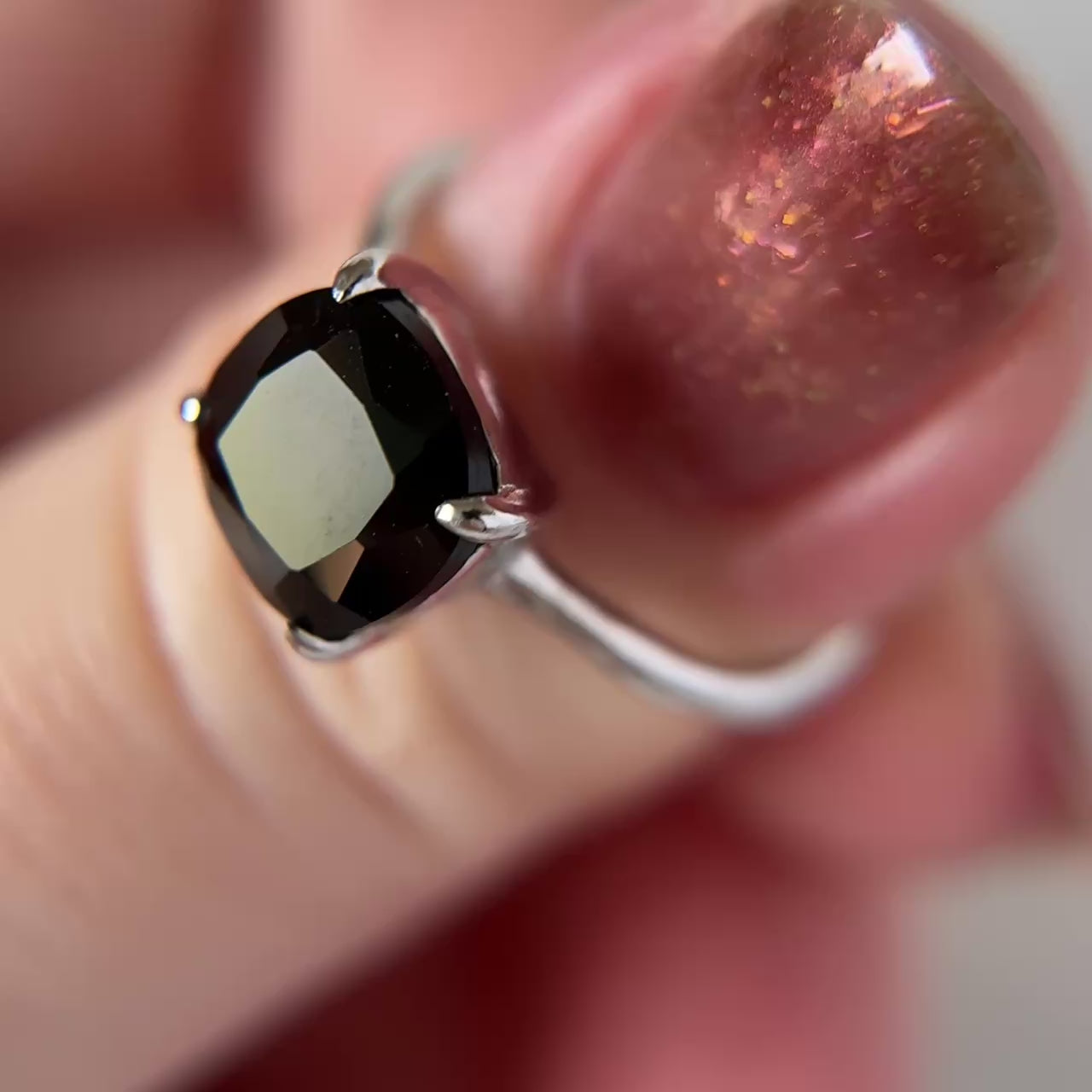 [ black spinel ] square faceted cut silver [ free size ]