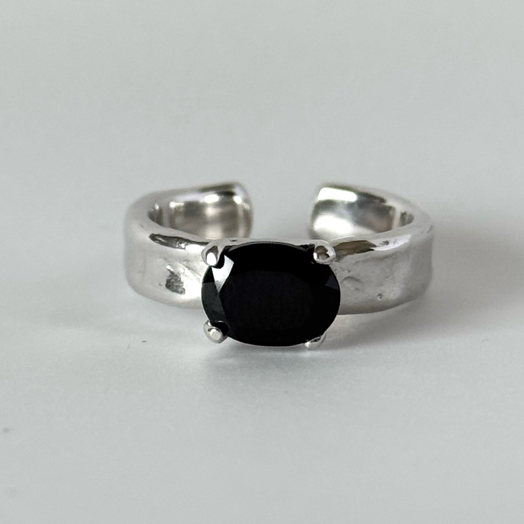 [ black spinel ] um silver ring [ free size ]