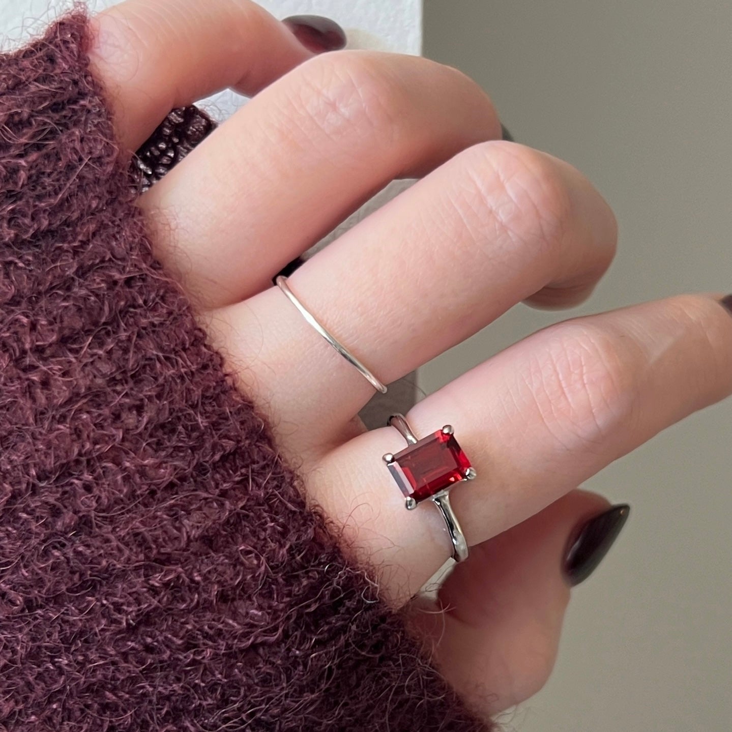 [ garnet ] rectangle faceted cut silver [ free size ]