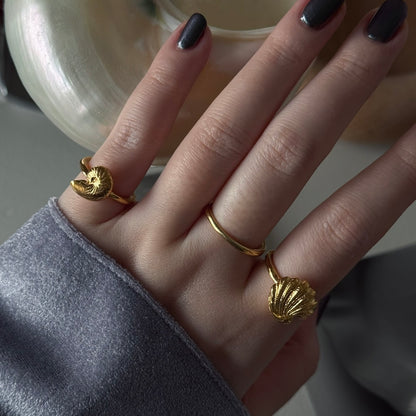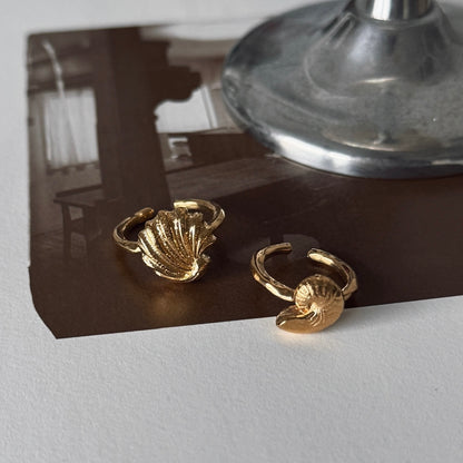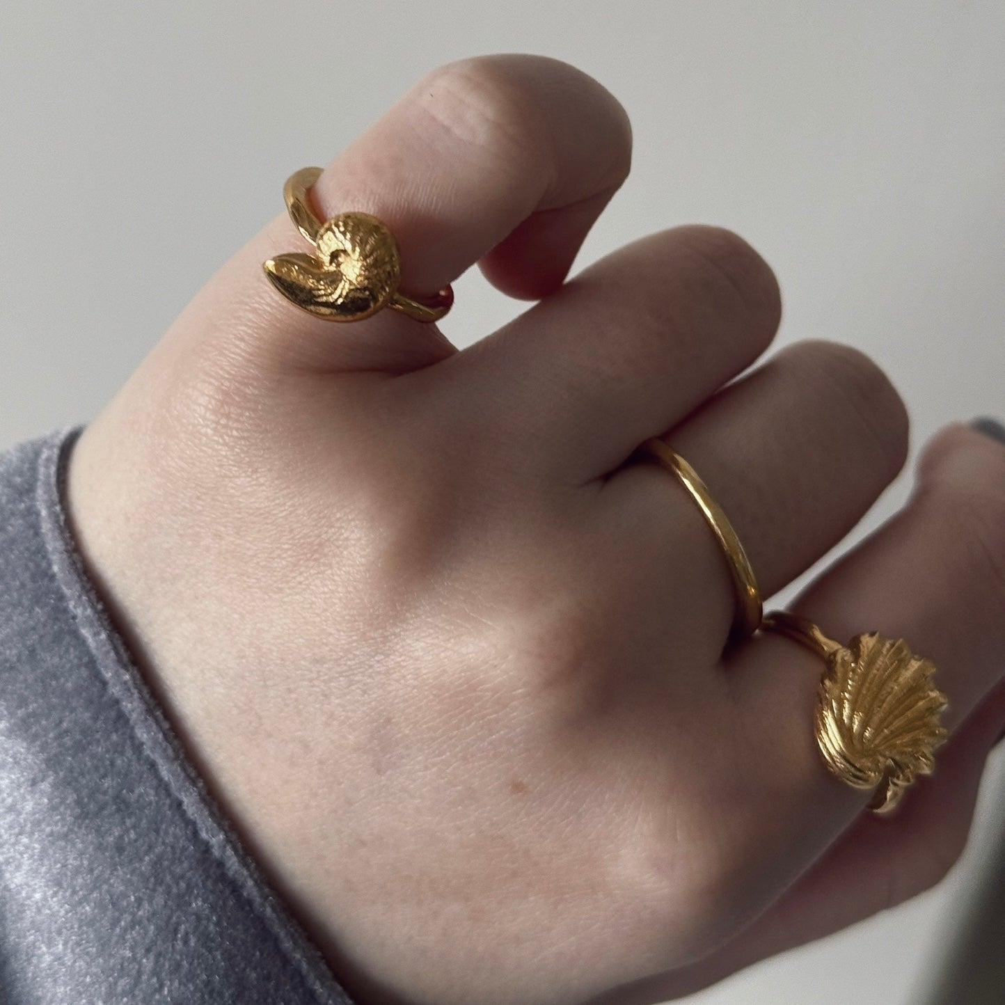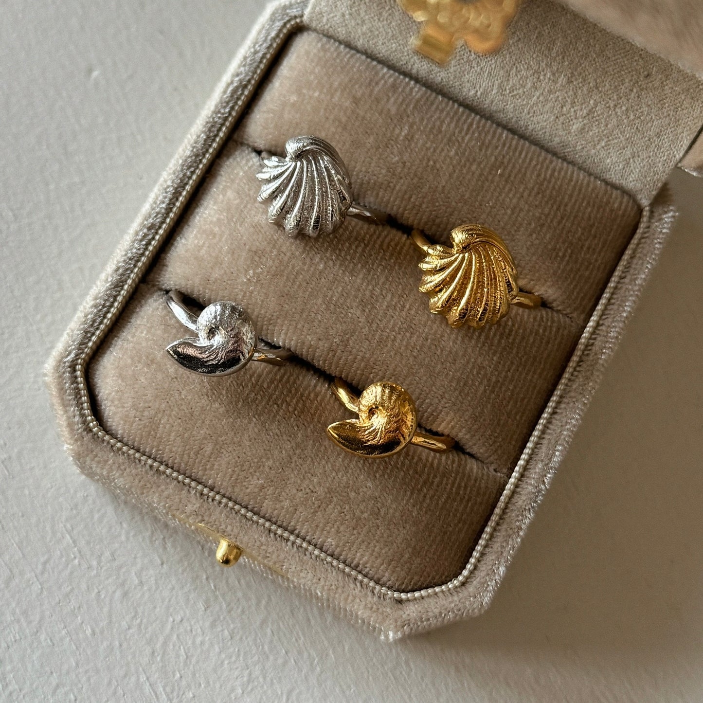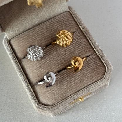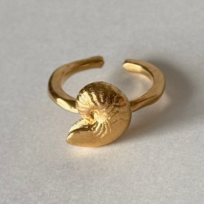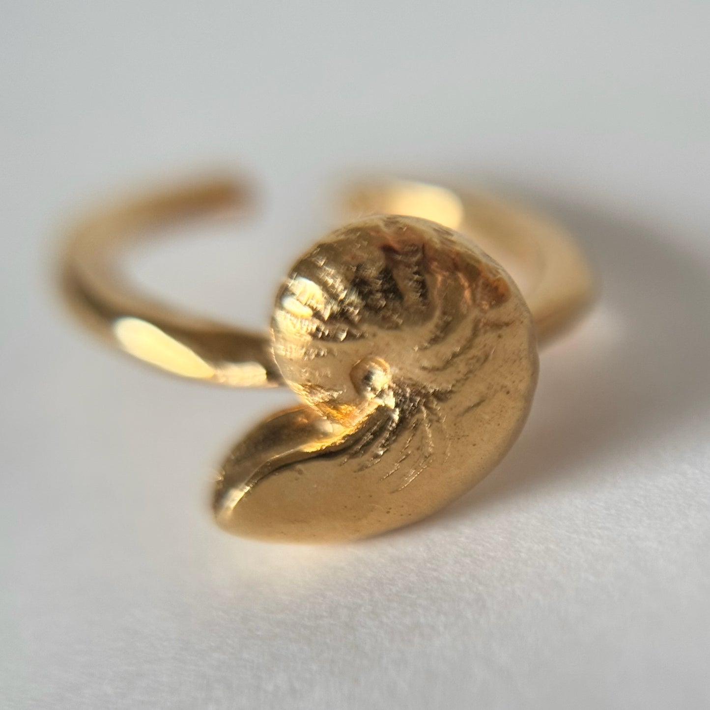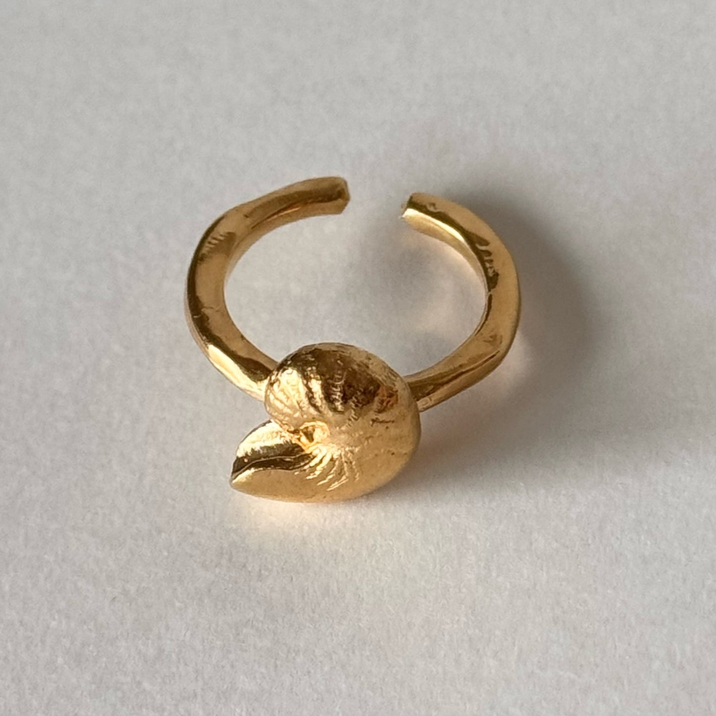 デッサンのような質感のオウムガイをモチーフにした小指サイズのリング。