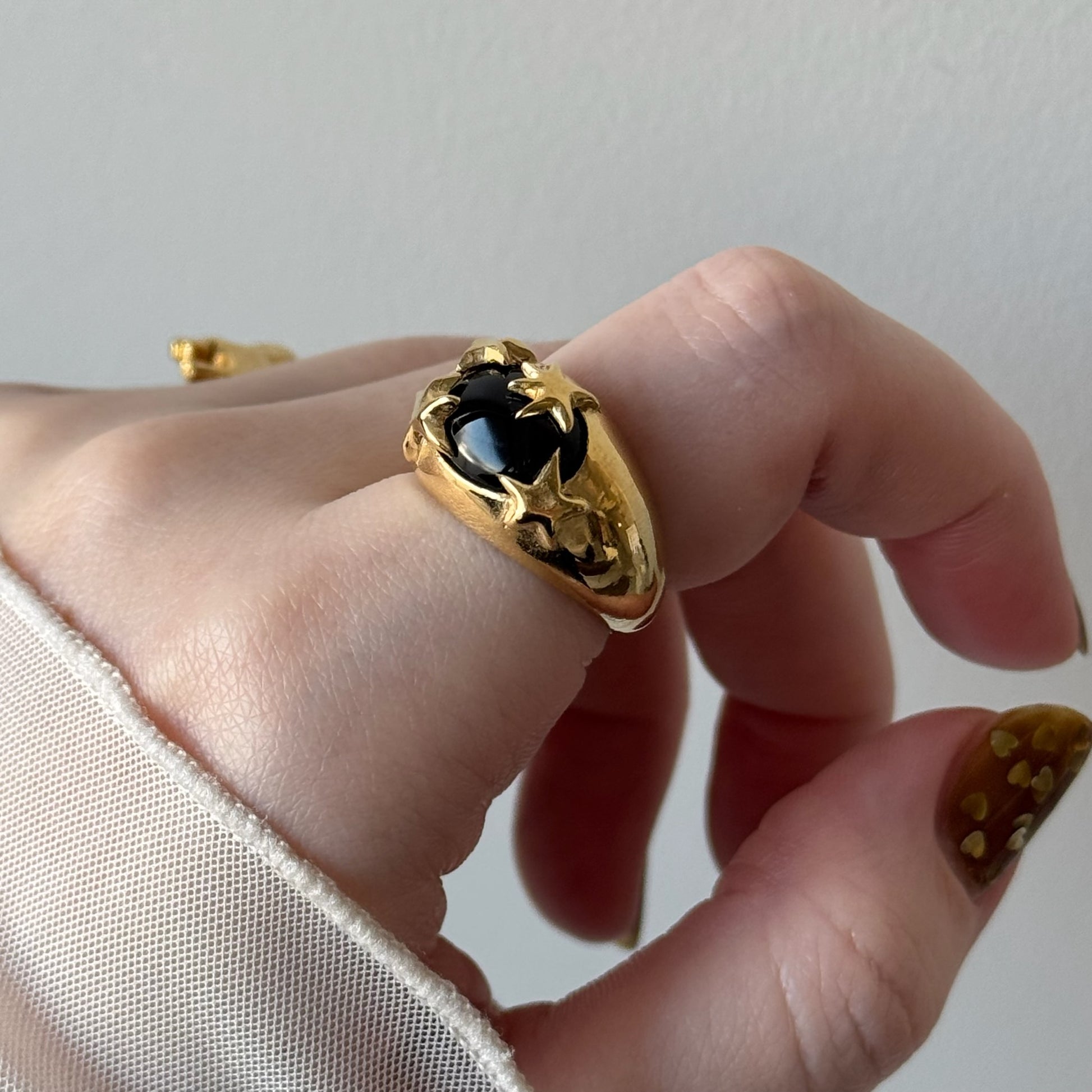 オニキスを留める小さな星たちがきらきらと手元を輝かせます。