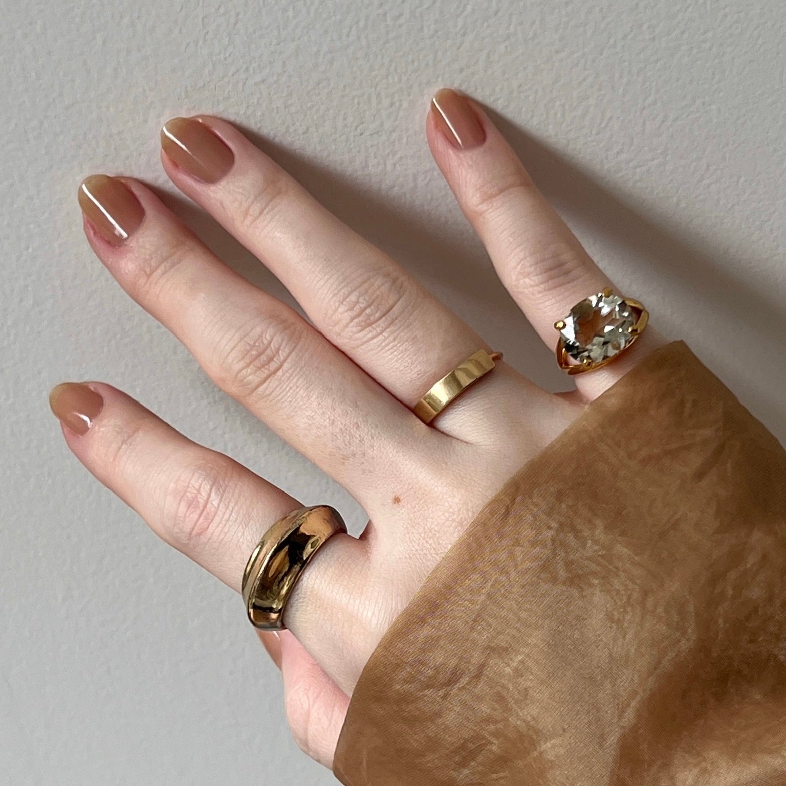大きな楕円形の一粒石を使ったreineに一回り小さなピンキーサイズが登場。