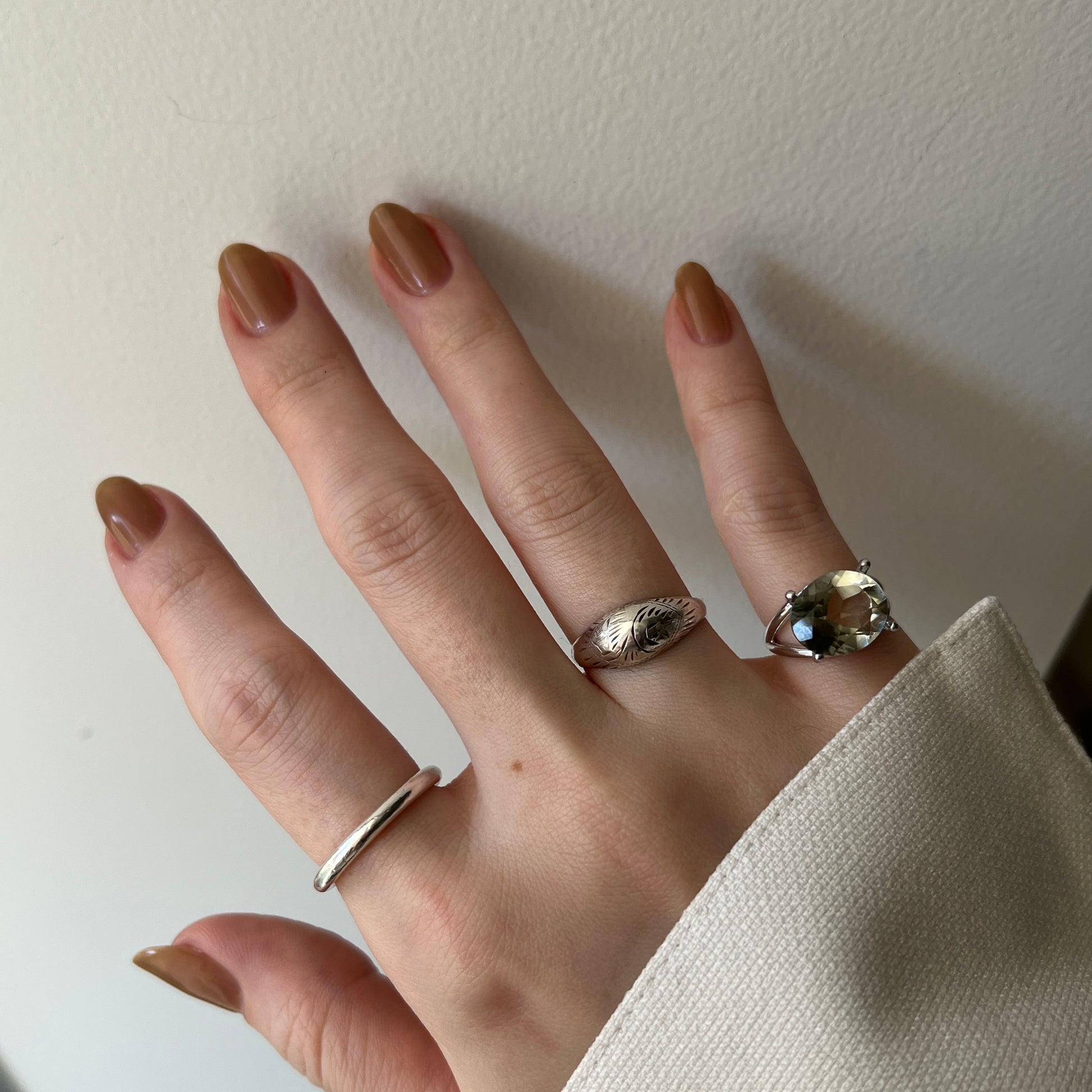 大きな楕円形の一粒石を使ったreineに一回り小さなピンキーサイズが登場。