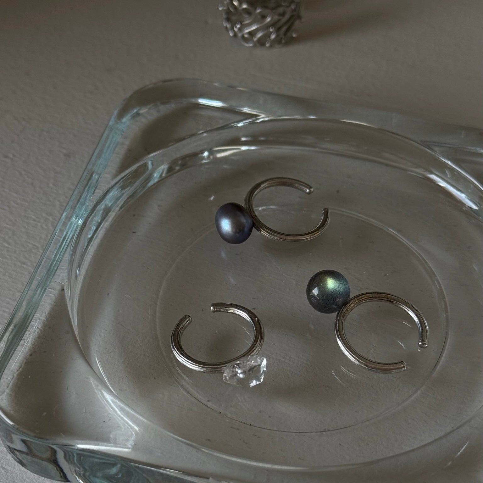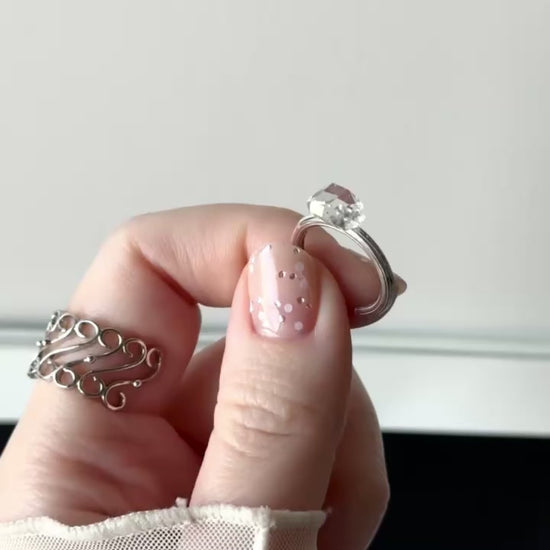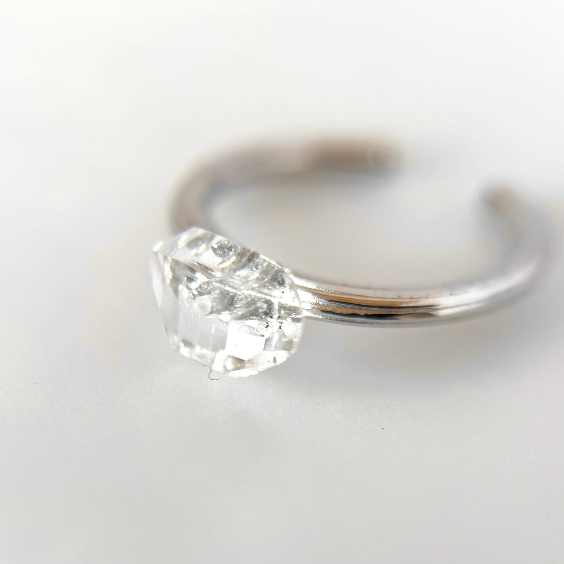 ハーキマーダイヤモンドを一粒あしらった小指サイズのリング。