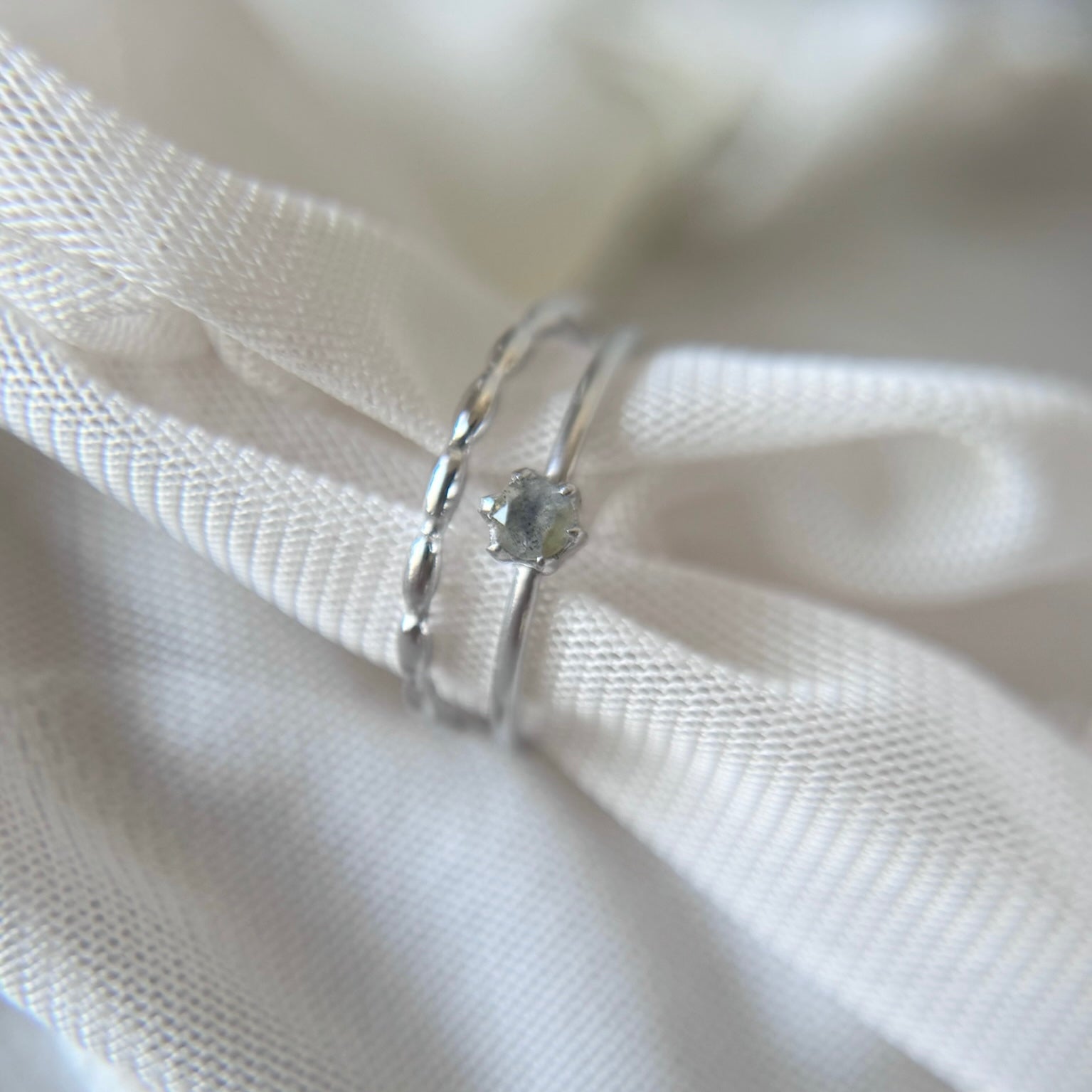 チェーンのような繊細さは他のリングと合わせて着用いただくのもおすすめです。