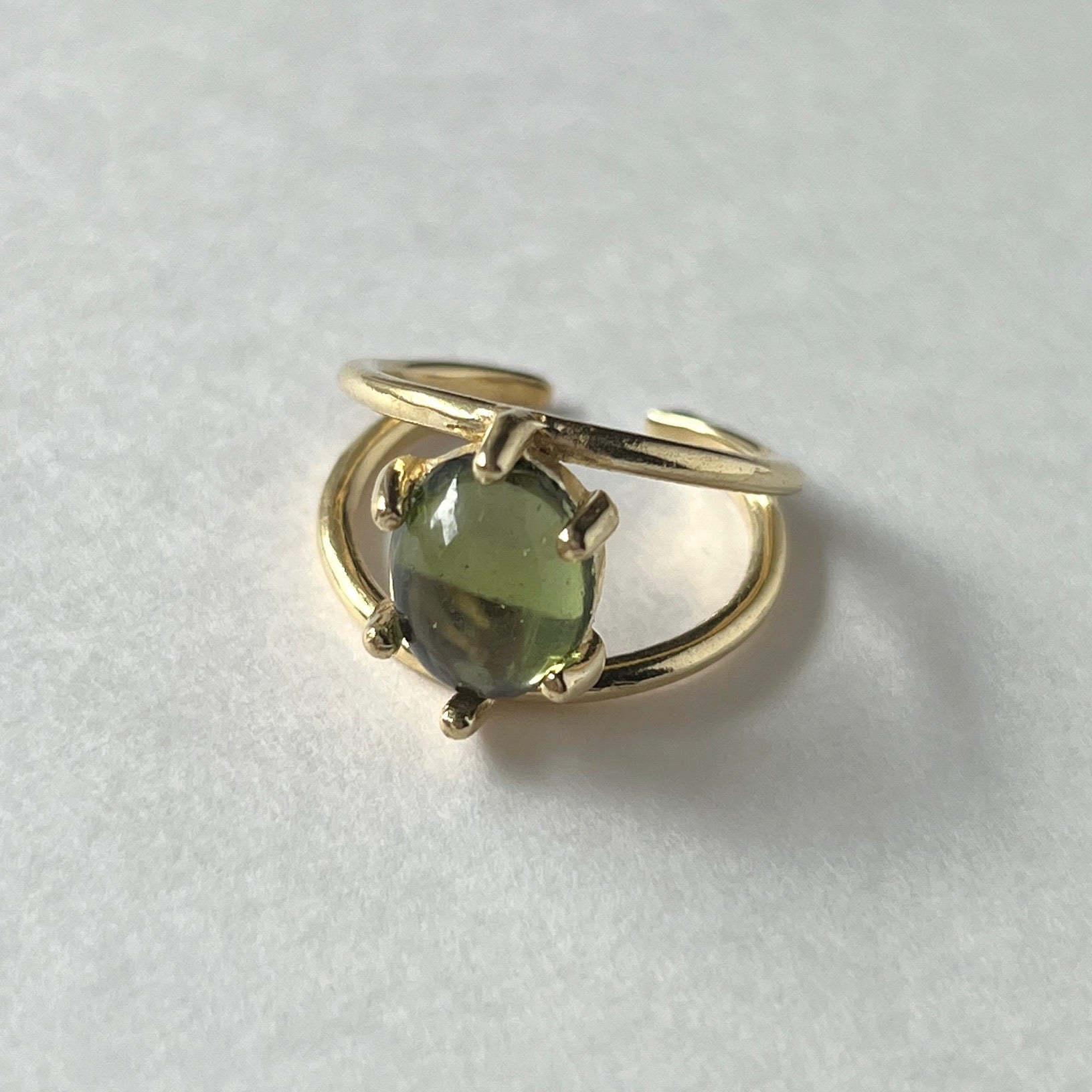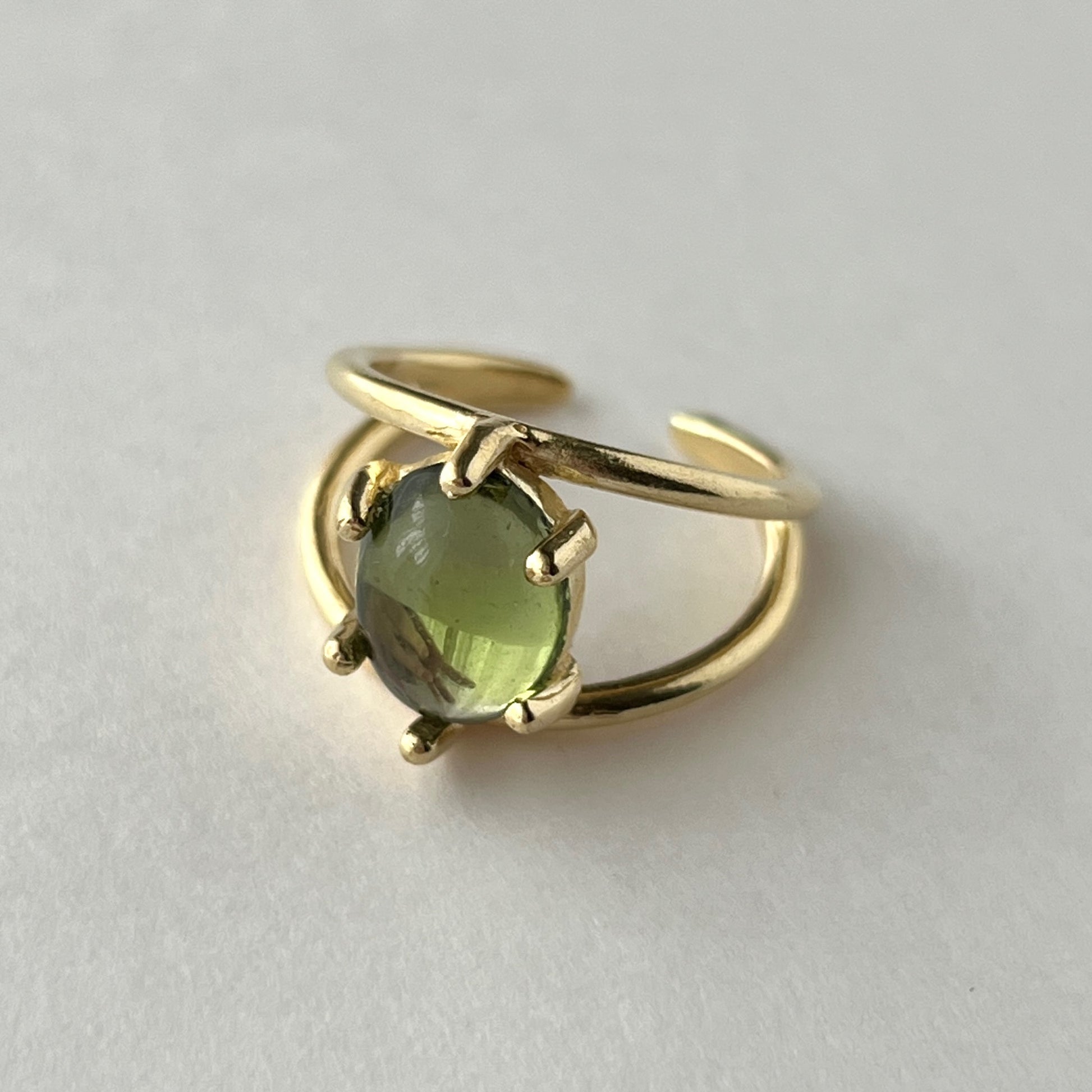 2本のリングでストーンを支えているような形のフリーサイズリング。