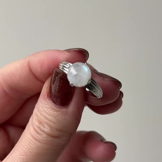 silver plated brass / rainbow moon stone