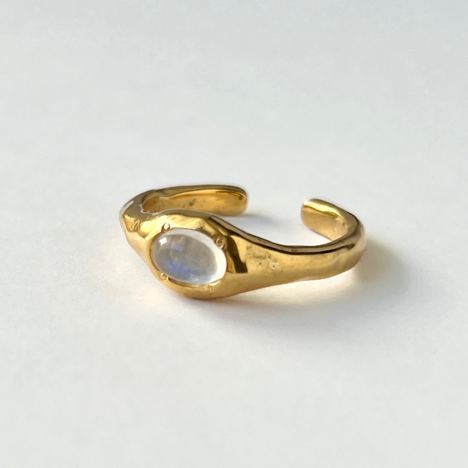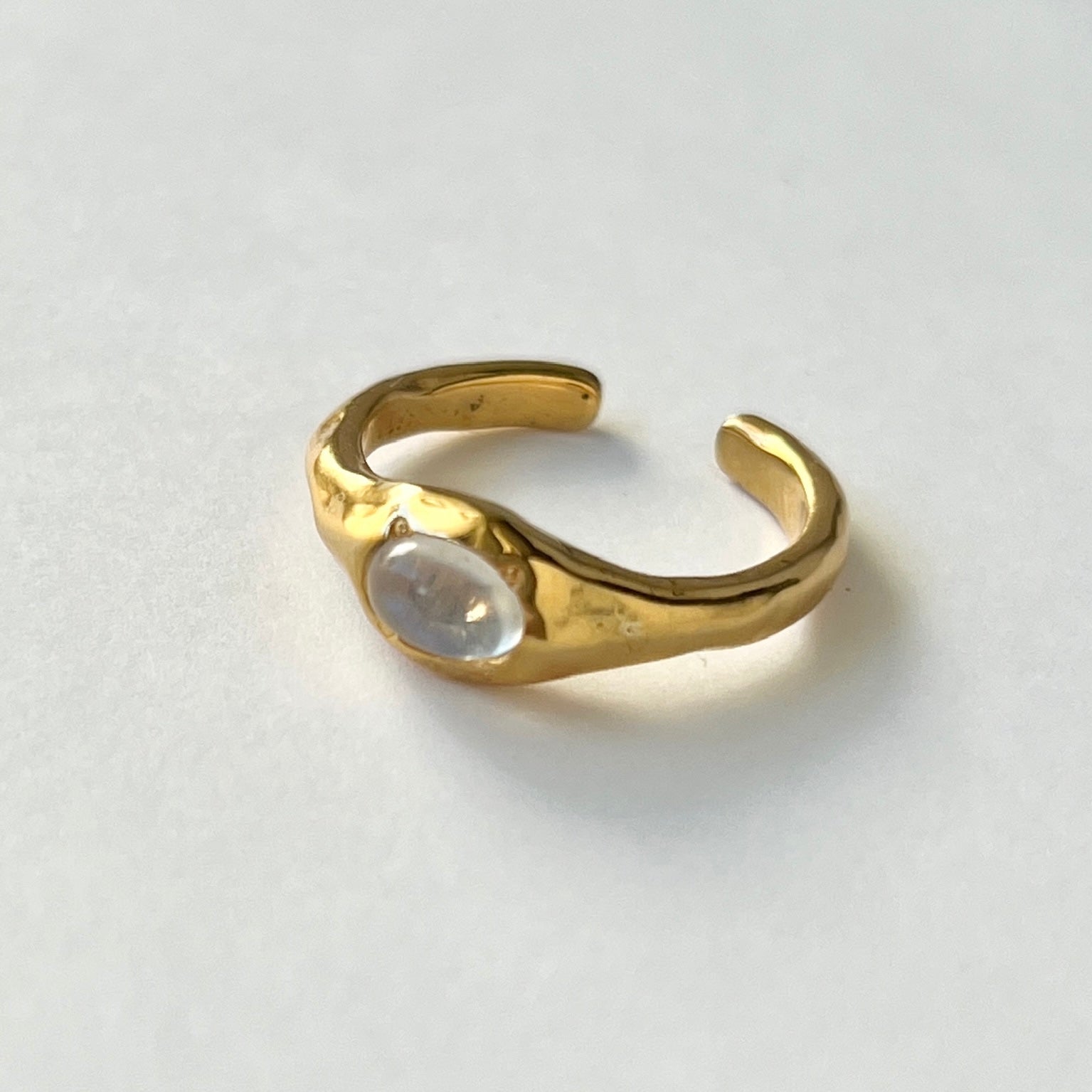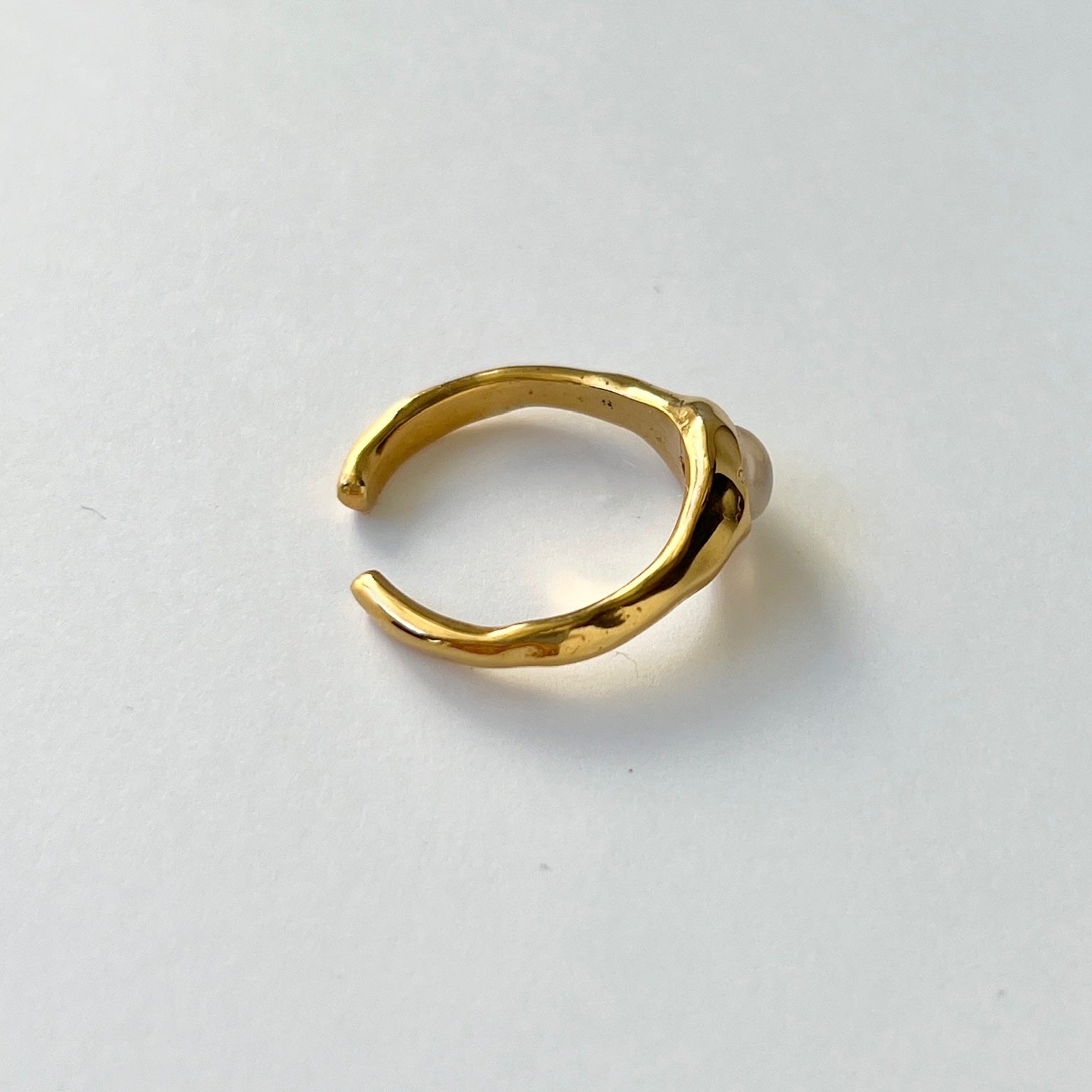 小さく輝くストーンと、ニュアンスのあるリングアームが日常使いにもぴったりです。
