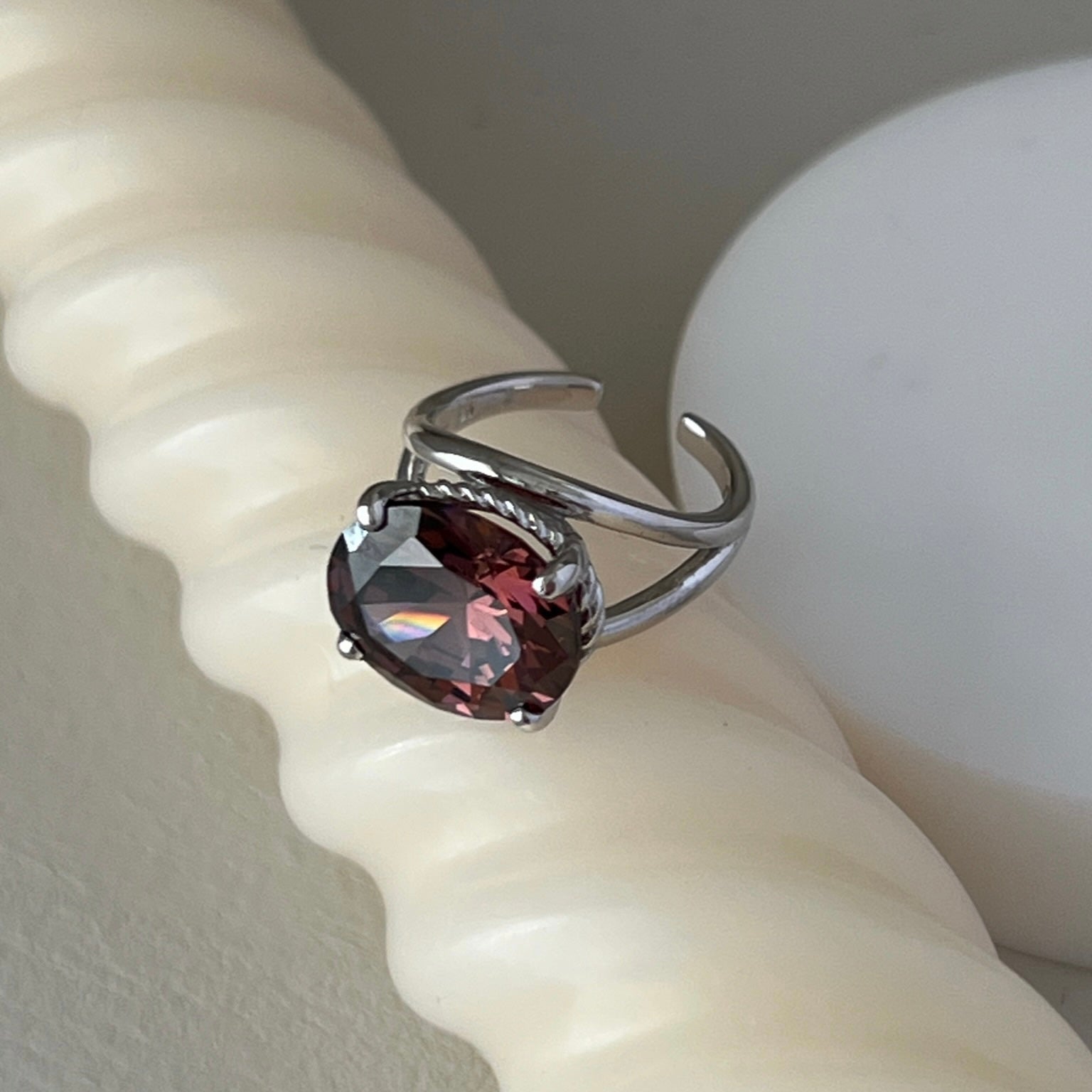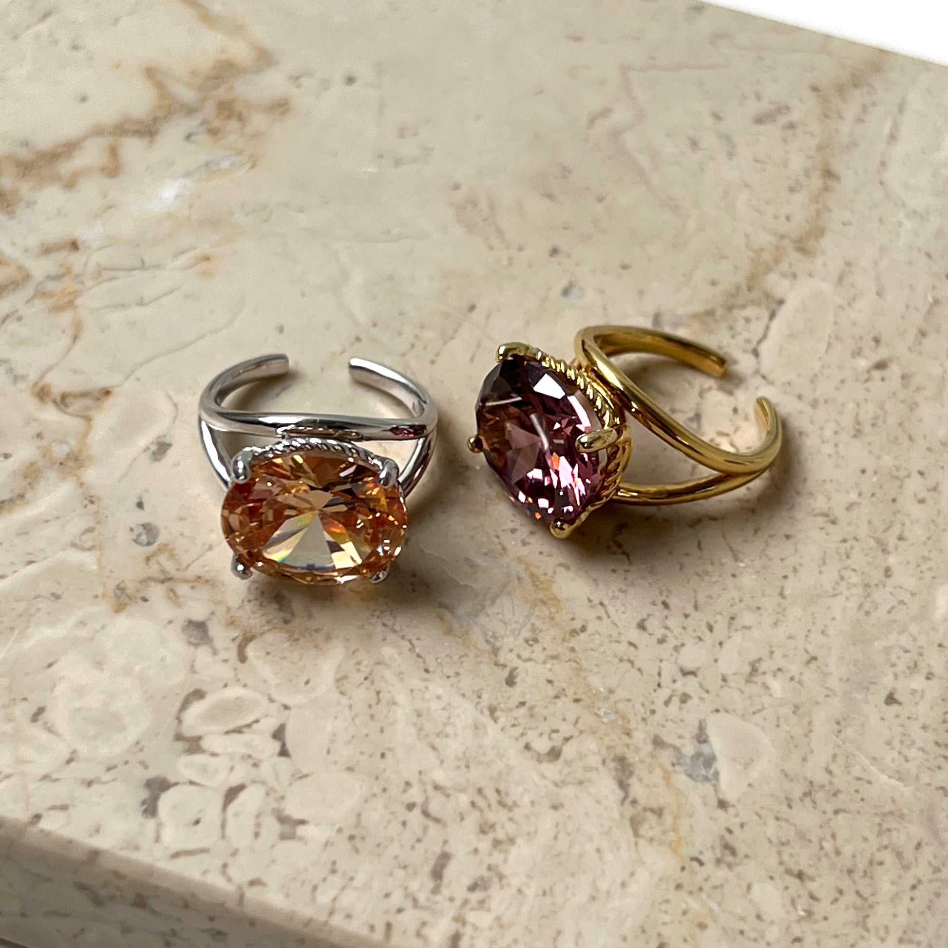 大きな楕円形の一粒石を使ったreineに一回り小さなピンキーサイズが登場。