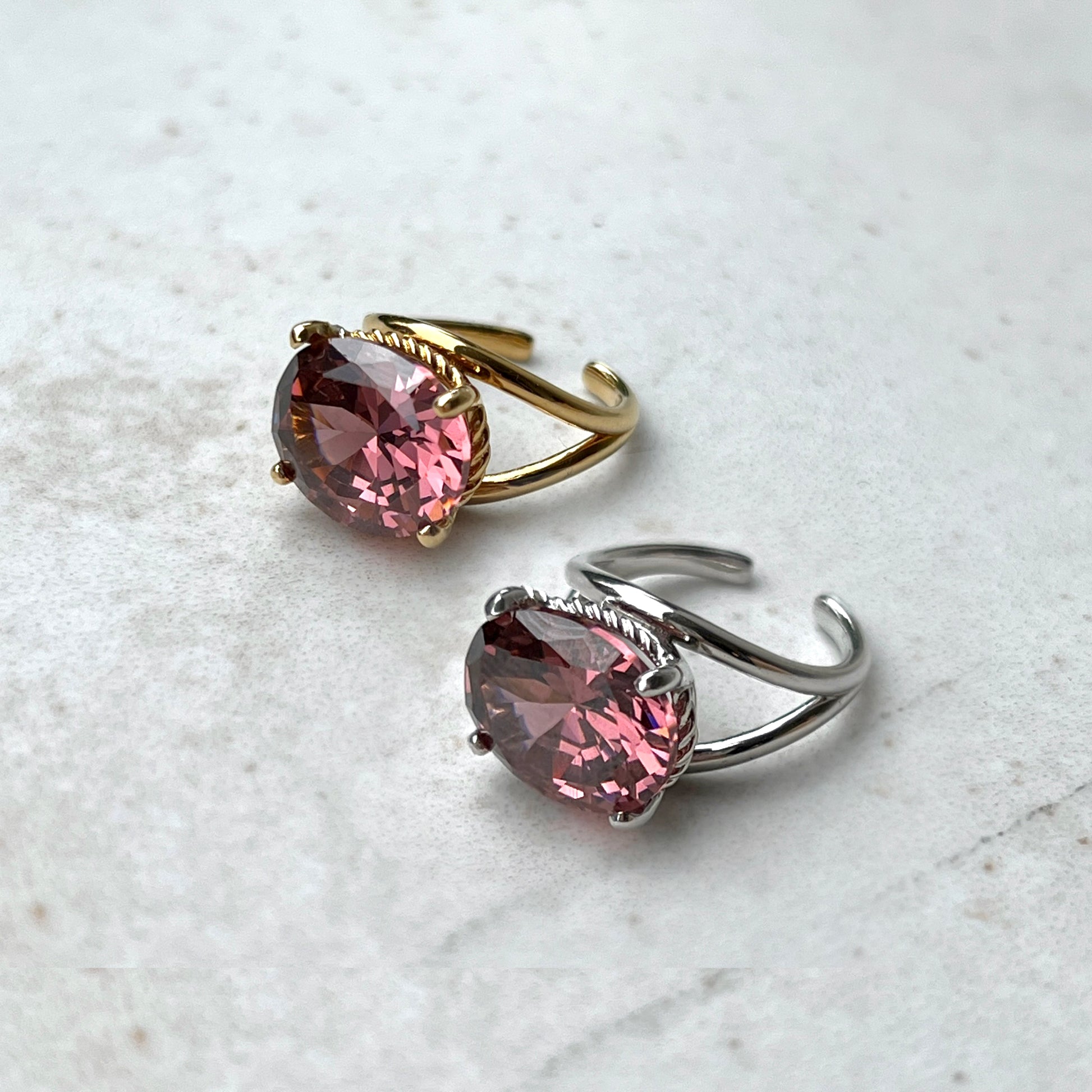 Rhodium plated brass / cubic zirconia (rosé)