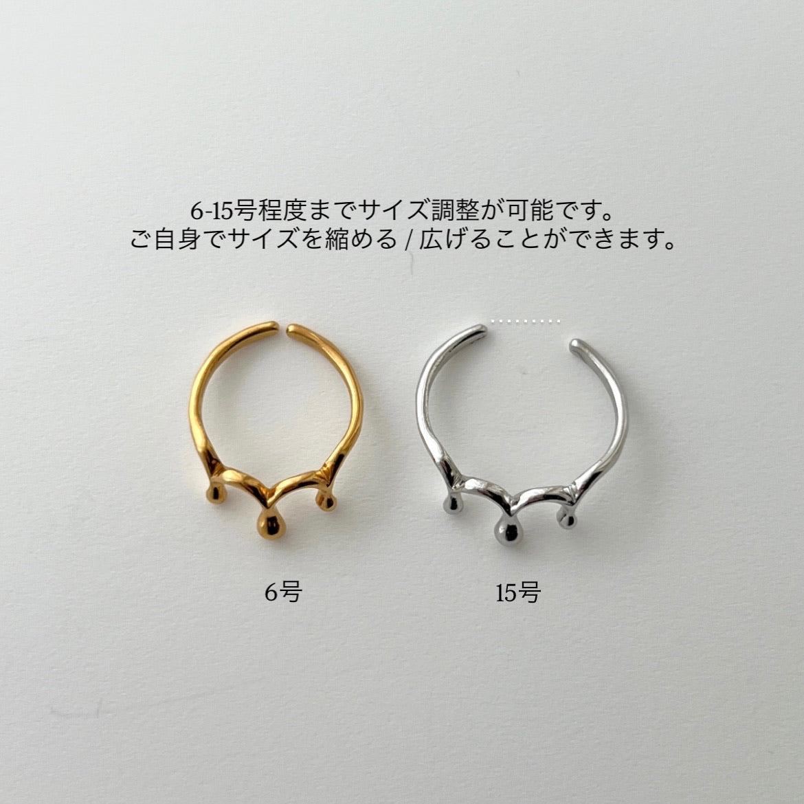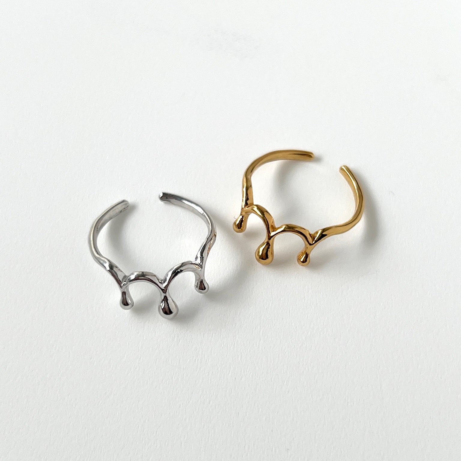 水滴がこぼれたような形のリング。