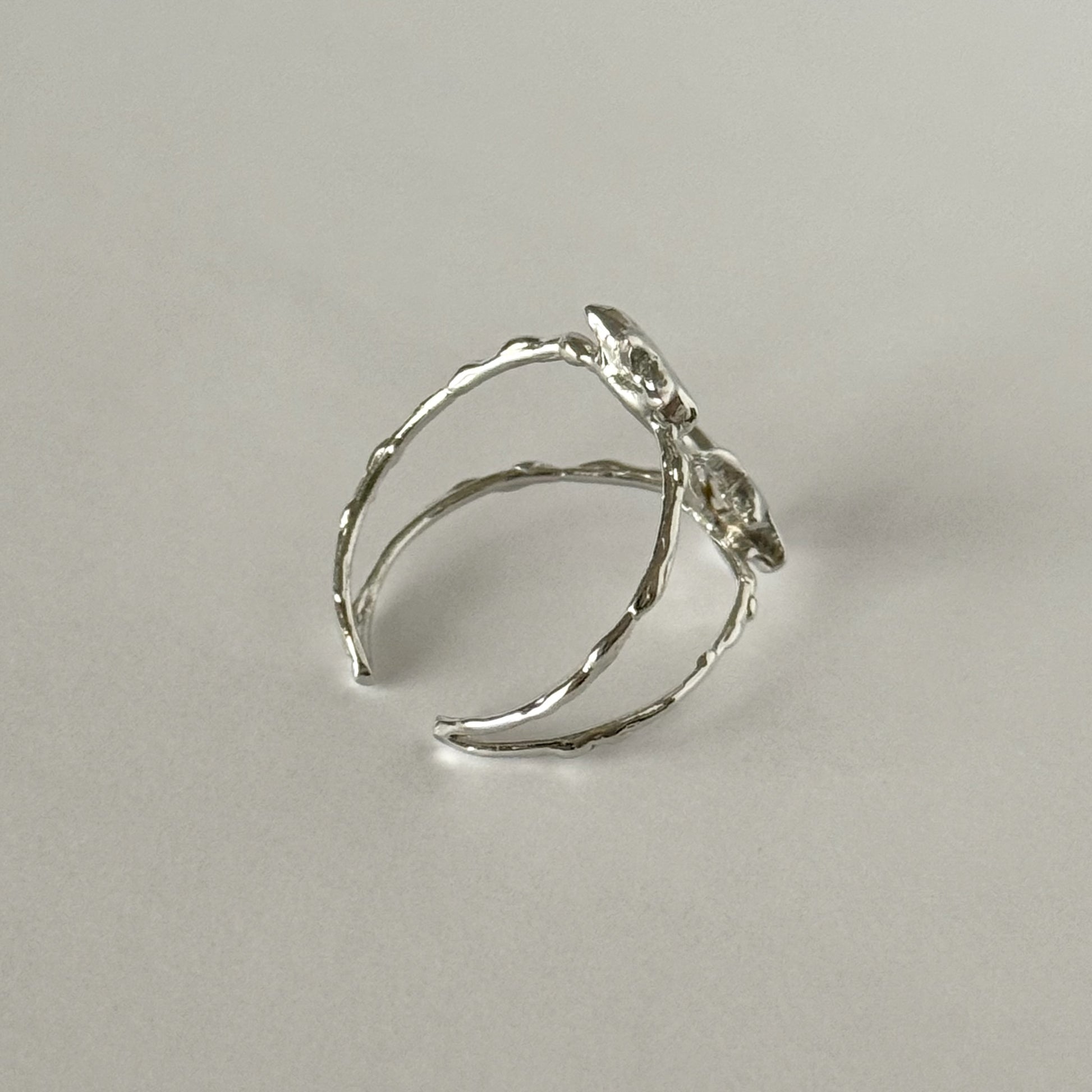 ご自身でリングアームを調整してお好きなサイズで使っていただけるフリーサイズリングです。