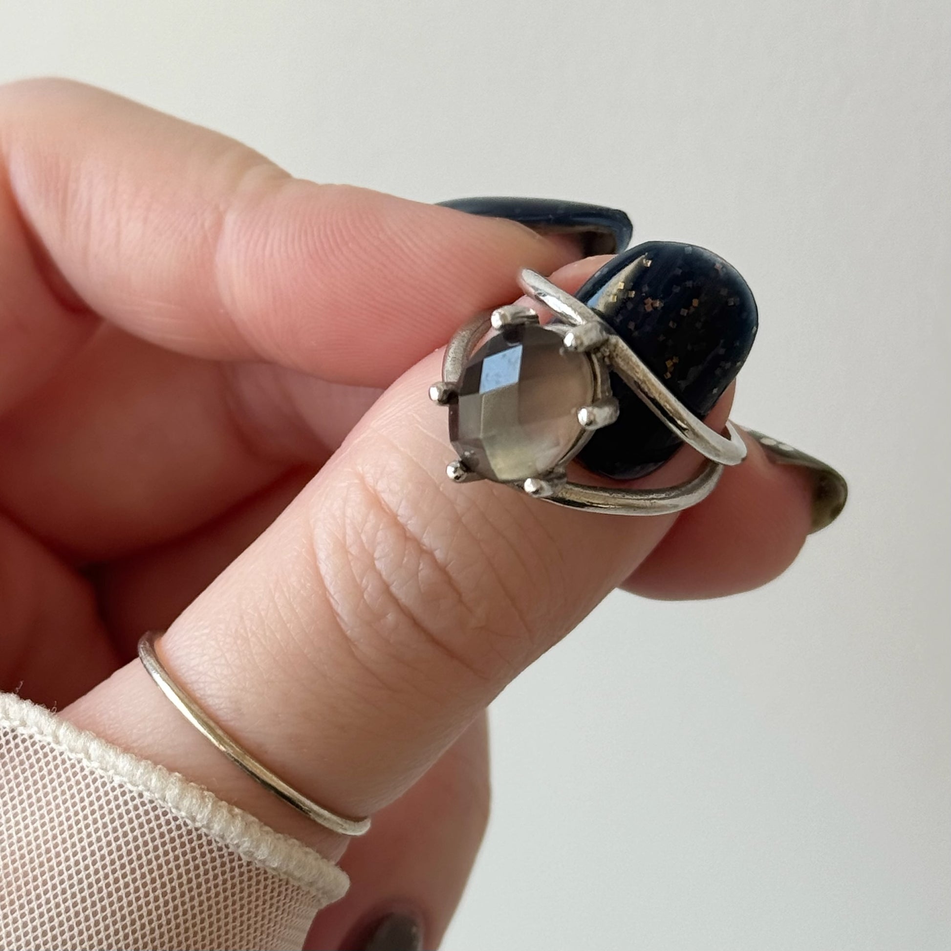 [ smoky quarz (multi-faceted) ] double silver [ free size ]