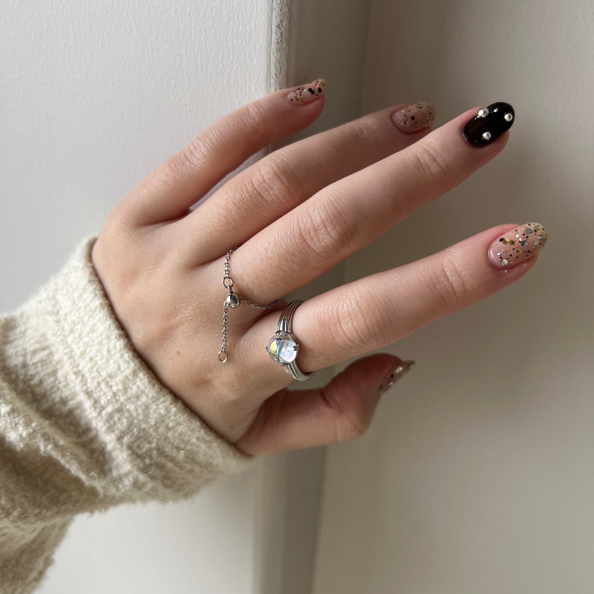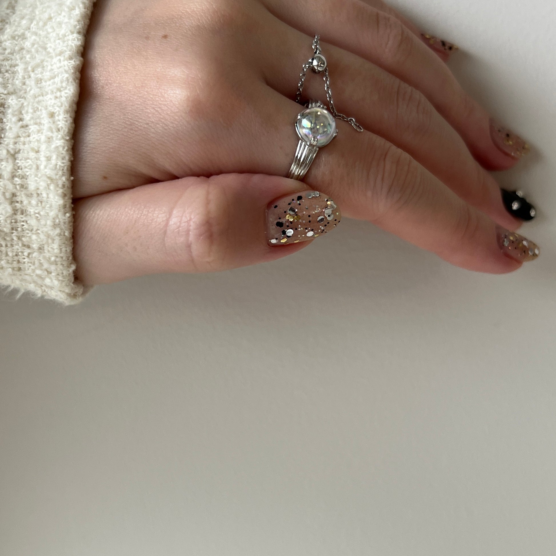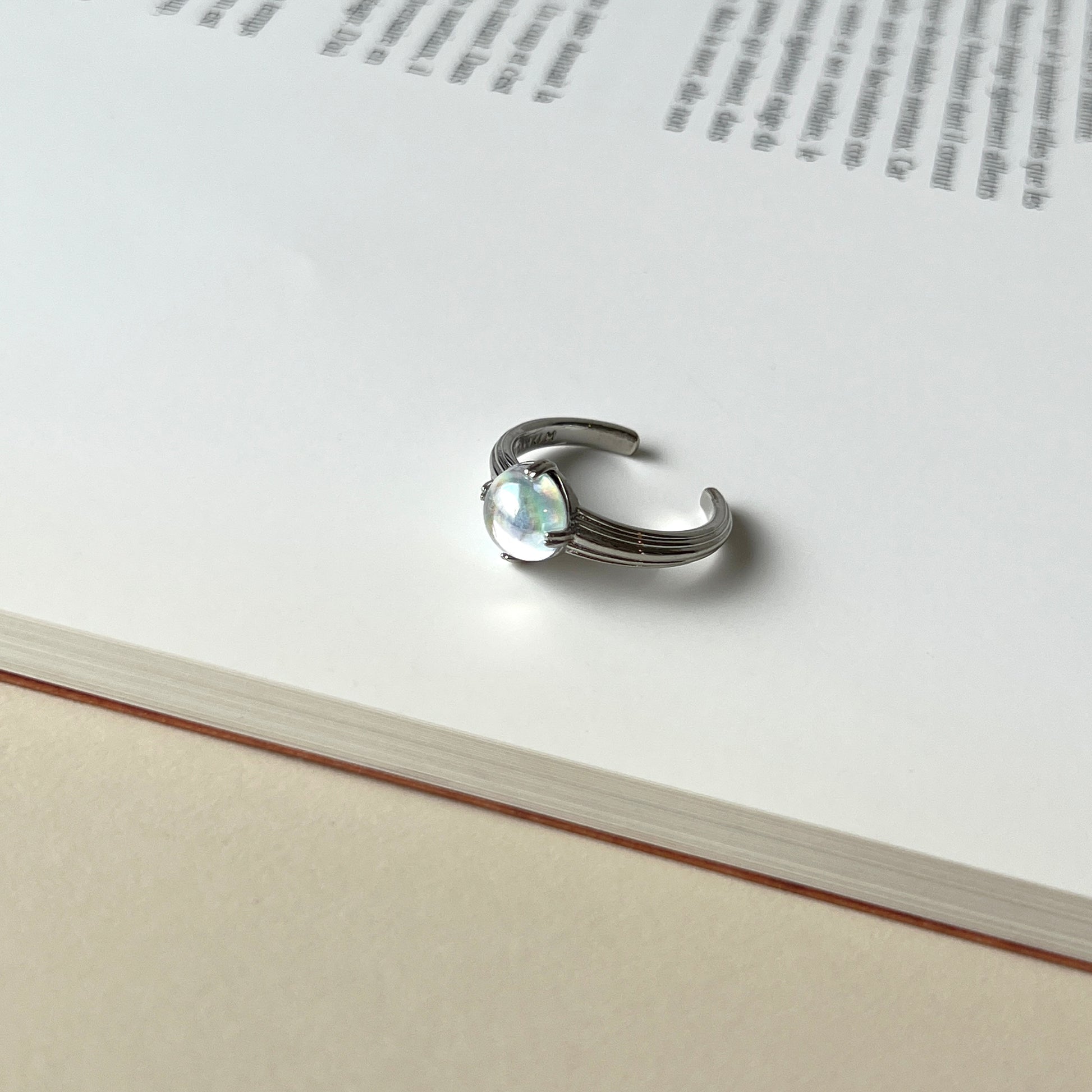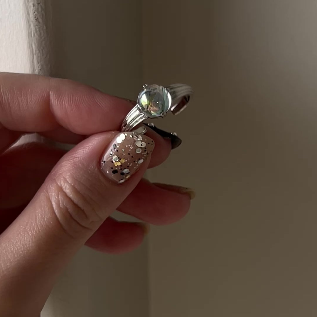 一見シンプルなクリアな石にみえますが、泡立てた石鹸のしゃぼん玉のように複雑に輝きます